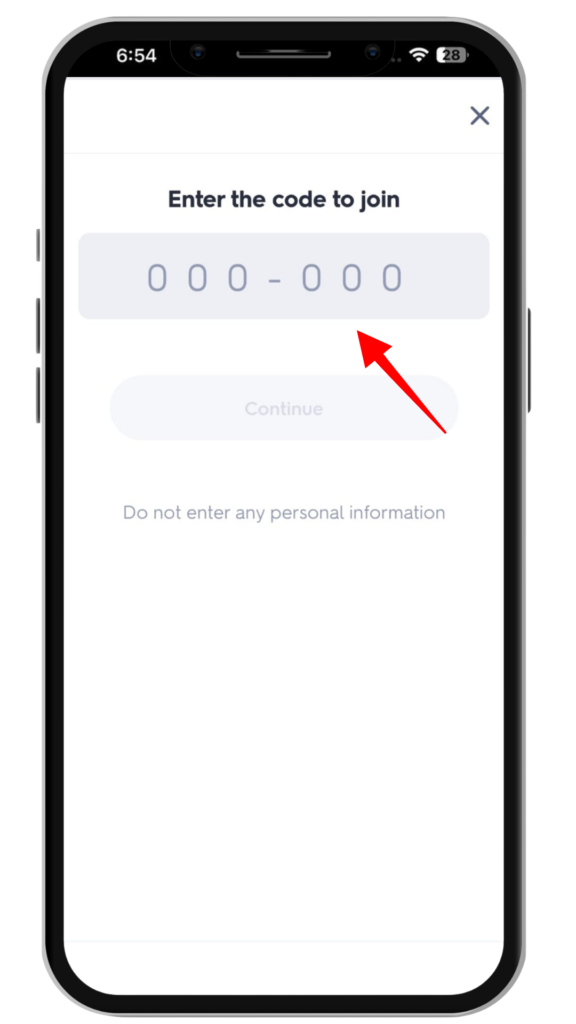 Type the Quizlet Live join code in the input box. Make sure the code is correct. Then click Join Game.